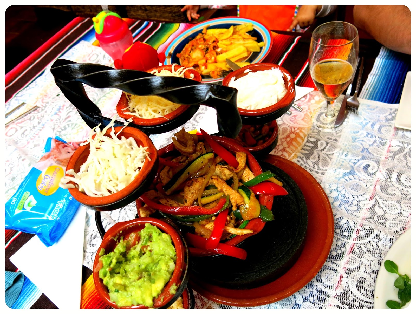 And whilst I didn’t get to eat a Brazilian barbeque, I did get to indulge in one of my favourite food nationalities – Mexican. We had lunch at the atmospheric Cielito Lindo (beautiful little sky being the literal translation, but I understand it is also the title of a popular Mexican song meaning lovely sweet one). Fresh guacamole (at the price we’d pay, you’d hope the avocadoes were fresh. Perhaps even grown with water from the Jordan River) and build-your-own fajitas. Delicious. Miss H had her first taste of Mexican food with a burrito. It wasn’t as popular as the accompanying chips.