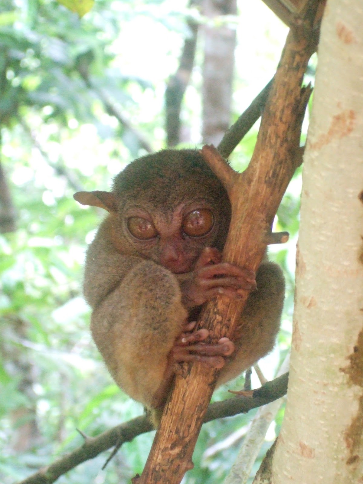 From Pythons to Tarsiers. Tarsiers are one of the world’s smallest primates and are indigenous to Bohol. I’d been worried about the conditions the tarsiers would be kept in, but I was pleasantly surprised. There was a really big enclosure, full of jungle where the tarsiers seem free to roam around. I was a little concerned that there were paper markers pointing out where a tarsier was sitting. I looked really closely, but couldn’t see anything tying them to the spot. I spoke to one of the rangers who told me that they sit so still during the day because that’s when they’re resting. It’s at night that they come to life and move around.