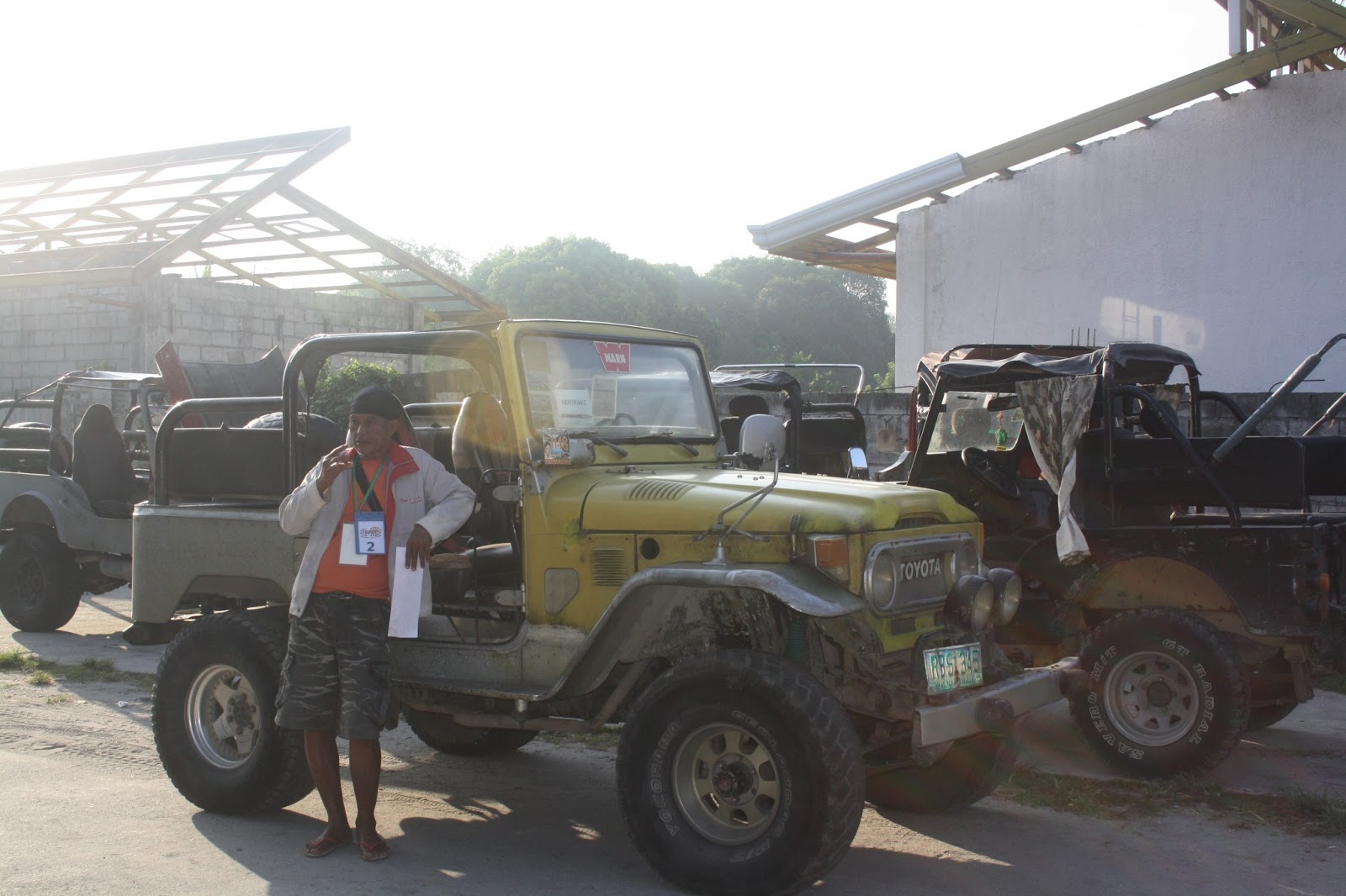 We were driven from Manila to Barangay Sta Juliana (in Tarlac) where we changed vehicles into 4x4s. It was quite a sight to see all the various shaped and sized 4x4s lined up along the road. Some had doors and roofs, others were more of a shell. We had been warned that there were no seatbelts, so we’d have to hold on tight. I don’t remember being warned that there were no doors. It all added to the experience.